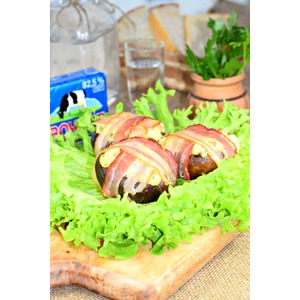 Описание: Сочные шампиньоны с начинкой из сыра и чесночного масла в сопровождении хрустящего ароматного бекона... Красиво, эффектно, очень сытно, вкусно, совсем не сложно и довольно быстро. Удивите и порадуйте ваших родных. Уверяю вас, получите огромное количество комплиментов.