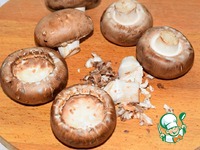Для приготовления закуски лучше брать крупные грибы. У шампиньонов вырезать ножку и внутри каждого сделать небольшое углубление чайной ложкой. |