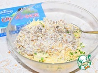 Добавить к сырно-масляной смеси сливочно-грибную, перемешать до однородности. Попробовать начинку на соль, при желании посолить. |