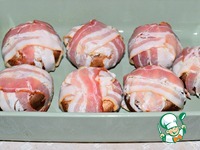 Каждую фаршированную шляпку обернуть ломтиками бекона. |