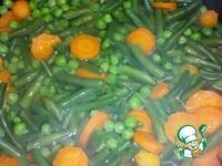 Горошек с фасолью добавить к моркови. На фото двойная порция овощей. |