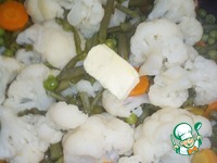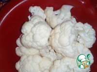 Цветную капусту разобрать на соцветия и также обдать кипятком, если она заморожена. Свежую просто вымыть. |
