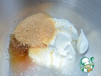 Клюкву перебрать, вымыть, обсушить на бум. полотенце. Включить духовку на разогрев. В дежу комбайна влить воду, добавить сахар, сметану. |