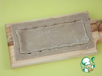 Сверху накрыть вторым аналогично вырезанным пластом теста. Хорошо скрепить края и обрезать лишнее тесто. |