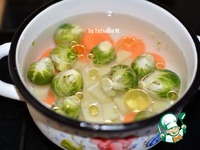 В кастрюлю выложить капусту, морковь (кружочками), картофель (кубиками), перцы, залить процеженным бульоном и варить при слабом кипении до готовности овощей; |