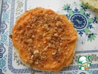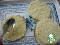 Приступаем к сборке пирожного. Нижний корж промочить апельсиновым соком. |