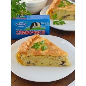 Описание: Сытный и простой в приготовлении пирог. А уж какой он вкусный! За счет обильного смазывания пирога сливочным маслом перед выпечкой и после выпечки тесто получается очень нежным.