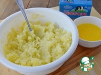 Отварной охлажденный картофель размять вилкой или пюрировать. Оставшиеся 100 г сливочного масла ТМ "Экомилк" растопить. |