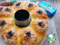 Яичный желток взбить с водой и смазать пирог. Посыпать кунжутом. Выпекать в предварительно разогретой до 180° духовке до золотистого цвета, примерно 35-40 минут. |