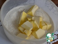 Добавить масло и перемешать тесто руками, пока не получим крупную крошку. |