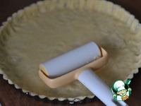 Подготовленную форму смазать маслом. Выкладываем тесто, плотно прижать тесто ко дну и бокам формы. Часто проколоть тесто вилкой. |