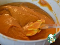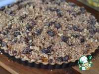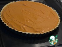 Выкладываем начинку на корпус. Разровнять. Уменьшить температуру духовки до 160гр. Поставить форму на большой противень, чтобы брызги не разлетались по всей духовке. Выпекаем пирог 40 минут. |