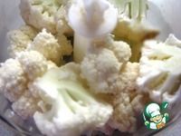 Цветную капусту вымыть, просушить бумажным полотенцем, разобрать на соцветия и измельчить в блендере. |