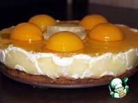 Далее, на застывшую смесь наливаем апельсиновый сок, смешанный с желатином, и ставим в холодильник на 2-3 часа. |