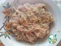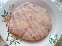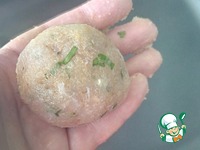 Сформовать тефтели: взять кусок фарша, расплющить в лепешку, в центр положить примерно 1 чайную ложку начинки. |