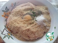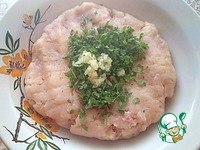 Добавить к фаршу мелко нарубленную петрушку и измельченный чеснок. |