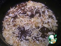 Лук тонко нашинковать перьями, поставить на огонь и пассеровать до золотистого цвета |