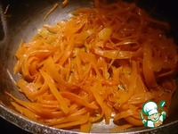 Морковь натереть на крупной терке и также пассеровать на небольшом огне до готовности. Лук и морковь жарить отдельно друг от друга, во время жарки я слегка овощи солила |