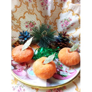 С помощью плёнки формируем мандаринку и снова немного подмораживаем. В выемку для красоты и имитации листика кладем лавровый листок. |