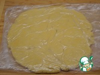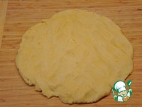 Быстро замесить тесто. Если тесто не будет собираться в комок, добавить 2-3 ст. л. холодной воды. Размять тесто в лепешку, |