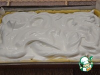 Белковую массу выложить поверх пирога, разровнять, вилкой нарисовать волнистый узор. |