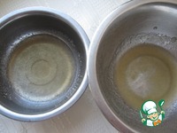 Залить желатин водой, в одной тарелке 5 г. и 2 ст. л воды, в другой 8 г и 2 ст. л воды. Оставить для набухания. |