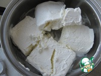 Приготовим крем. В кастрюлю положить мороженное пломбир и поставить на водяную баню. |