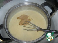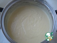 Добавить яйца, сахар коричневый, ванилин и 2 ст. л. муки, варить до загустения, помешивая. Когда крем загустеет, добавить сливочное масло. |