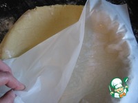 Чтобы корж не деформировался при выпечке кладём пергамент с грузом и выпекаем с ним первые 15 минут. |