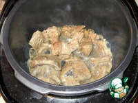 Заливаем подливкой перловку с мясом и готовим в режиме варка 1 час. Или используем 1100 мл. воды. |