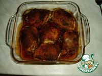 Замаринованные бедрышки выкладываем в форму для запекания и посыпаем тонким слоем панировочных сухарей. Ставим в холодную духовку на 1 час |