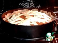 Форму поставила в разогретую до 180 градусов духовку и выпекала 40 минут. При желании можно разложить по верху пирога полоски сыра. Я раскладывала сыр когда пирог поднялся. |