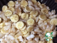 Спелые груши и бананы очистить, нашинковать, смешать с сахарным песком и корицей. |