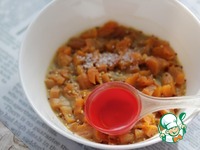 Курагу (я предпочитаю предварительно нарезать ее на небольшие кусочки), семена горчицы, горчичный порошок и воду смешать в миске. |