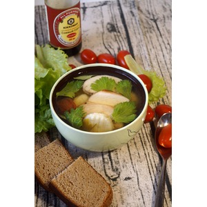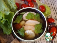 Подавать бульон вместе с нарезанными ломтиками запеченной курицы и картофельными ньоками. Приятного аппетита! |