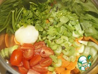 Описание: Предлагаю вам попробовать вкусный насыщенный овощной бульон с картофельными ньоками, запеченной куриной грудкой и чесночной заправкой.