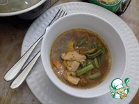 Описание: Суп с курицей, опятами, зелёной фасолью, овощами и соевым соусом KIKKOMAN лёгкий. Для подачи сделала фунчозу. Вкусно, не сложно и сытно.