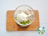 Поместите в чашу блендера авокадо, чеснок и сливочный сыр. Измельчите всё в однородную массу |