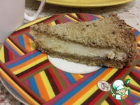 Половину крошки выложить на смазанную маслом сковороду с бортиками, затем творожную массу и прикрыть всё оставшейся половиной крошки. |
