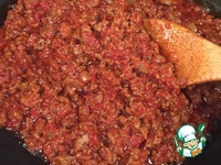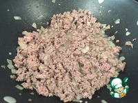 Добавляем фарш, соль и перец по вкусу и готовим, периодически помешивая, около 5 минут. Фарш должен из красного стать коричневым. |