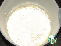 В массу добавить манку, взбить, затем просеять муку с разрыхлителем. |