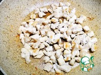 На той же сковороде обжариваем нарезанную мелкими кусочками индейку. |