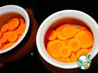 На них выкладываем нарезанную тонкими кружочками морковь. |