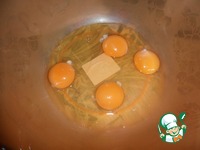 Предупреждаю, если форма у вас маленькая, то смело уменьшайте количество ингредиентов в два раза. Яйца разбиваем в миску, где будем мешать тесто |