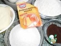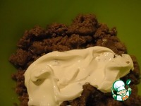 Соединить в одной посуде: сахар, муку, разрыхлитель теста, кофе молотый, тщательно перемешать. Масло сливочное нагреть до сметанообразной массы, добавить к сухой смеси, перемешать. |