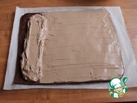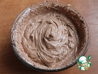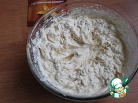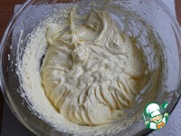Пока пропитка охлаждается, займемся кремом. Сливочное масло нужно заранее достать из холодильника, чтобы оно размягчилось. Взбиваем его до побеления, добавляем порциями сахарную пудру и вливаем сгущенное молоко.