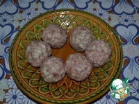 Из фарша скатать 6 шариков, одинакового размера. Фарш я делаю из свинины, добавляю лучок, солю, перчу. Яйца в него добавлять не надо. |