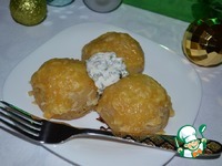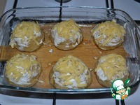 Получившиеся шары, обильно обвалять в муке и выложить в смазанную форму. У меня получилось 6 штучек. |