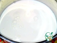 В кастрюлю с кус-кусом налила молоко и поставила на плиту. Доведя до кипения, осторожно помешивая, тонкой струйкой вылила кокосовое молоко с желтками. |