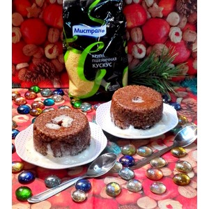 Описание: Десерт из кус-куса с шоколадом и начинкой из маршмеллоу.